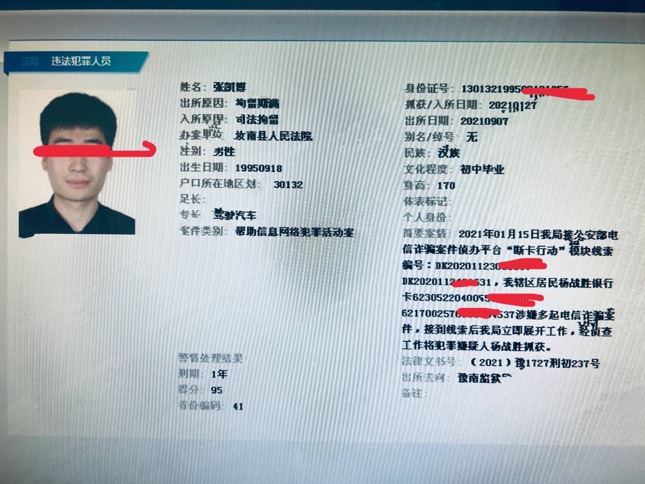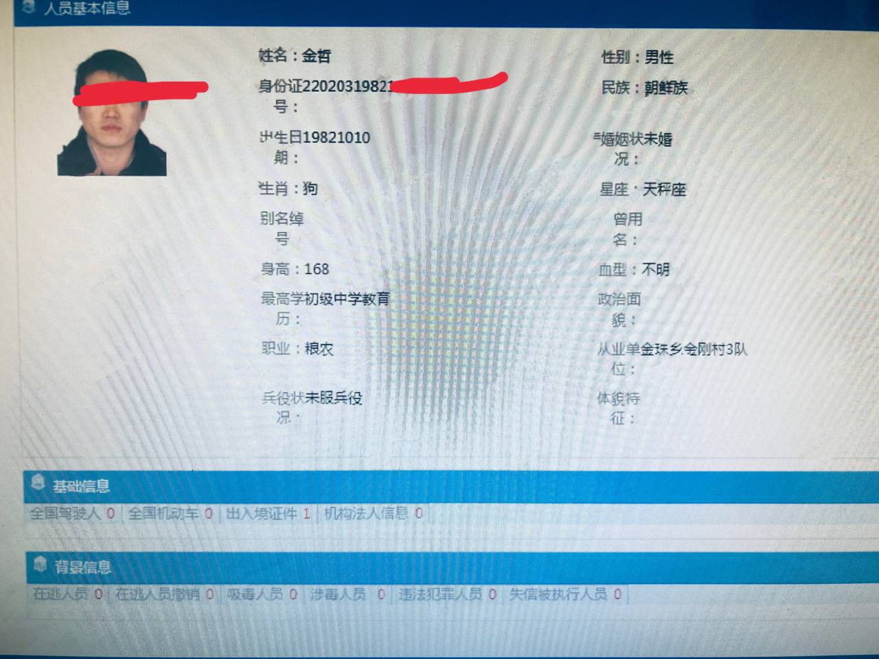 查询结果有:是否在逃,是否吸毒/涉毒,是否违法犯罪,是否为经侦嫌疑人。如果有记录,则显示记录。