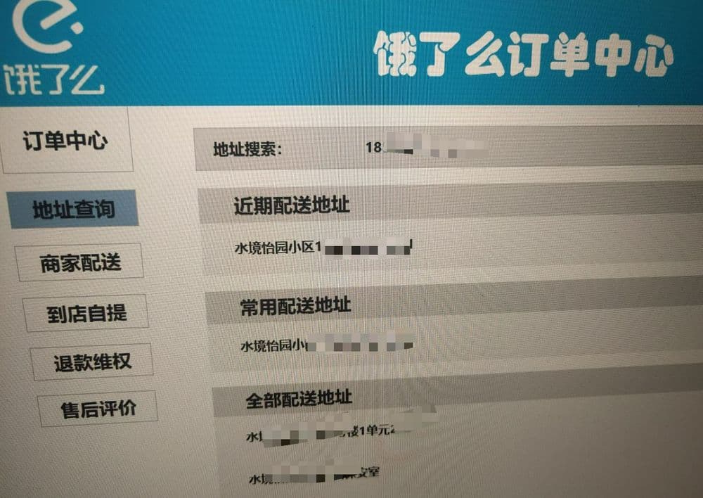 查询美团外卖和饿了吗地址,需要提供手机号。查询前,请确认此手机号是其常用手机号。内容包括收货地址,下单时间,支付方式。
